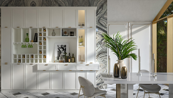 精致干練源于內心的強大,雅致布紋與輕奢皮革的碰撞,是理性與感性的交融,極簡的瓷泳灰輕奢鋼化灰玻中和了空間的色彩,高端,簡雅,這就是慕格所表達的設計理念。